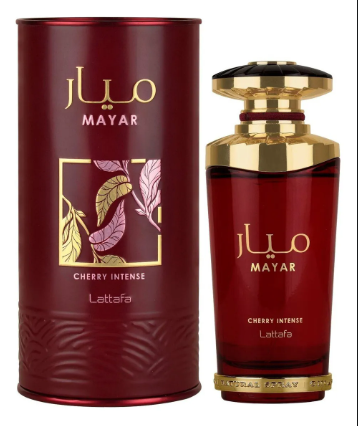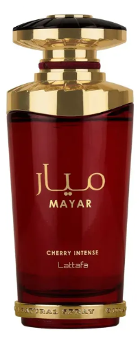 Características: Mayar Cherry Intense de Lattafa Perfumes es una fragancia de la familia olfativa Oriental Vainilla para Hombres y Mujeres. Esta fragancia es nueva. Mayar Cherry Intense se lanzó en 2024. Las Notas de Salida son fresa y bergamota; las Notas de Corazón son Cherry Jam y cacao; las Notas de Fondo son pachulí, ámbar y vainilla.