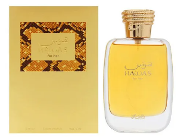 Hawas For Her es una fragancia femenina irresistiblemente adictiva, que inicia con una chispeante mezcla de granada, manzana y pomelo. El corazón de la fragancia revela un bouquet floral de iris y jazmín sambac, que aporta un toque de elegancia y sofisticación. Las notas cítricas añaden frescura y vitalidad, mientras que el praliné introduce una dulzura envolvente. La base de pachulí y vetiver proporciona una profundidad terrosa y sensual, dejando una estela memorable y encantadora.